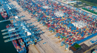 電動(dòng)搬運(yùn)車(chē)見(jiàn)證集裝箱碼頭繁忙場(chǎng)景