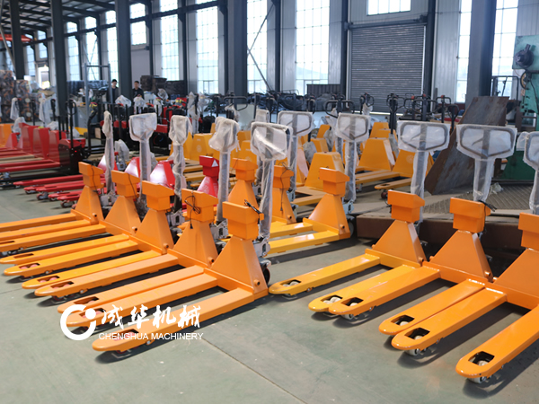 在繁忙的倉庫環境中,帶秤的手...